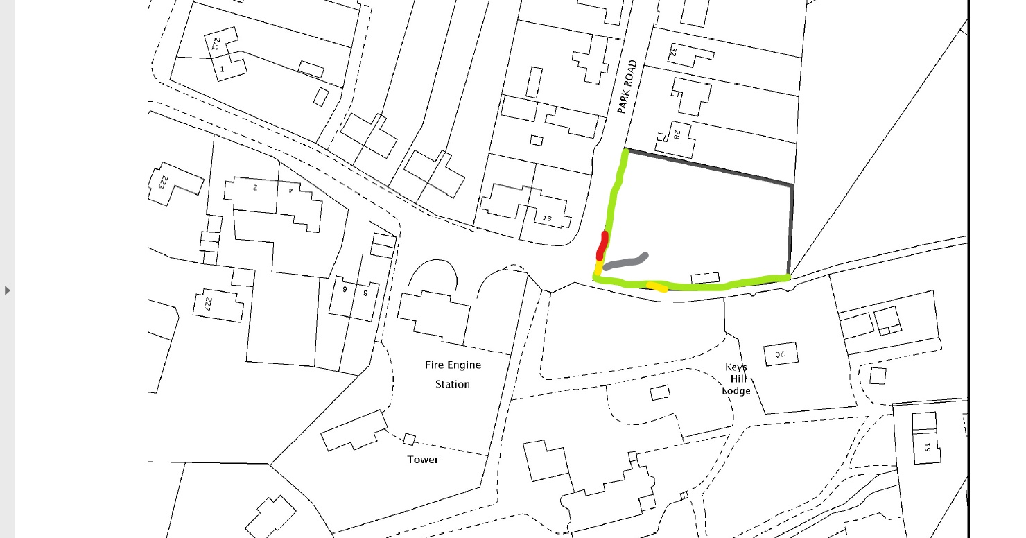 On the attached plan green is the new fence, yellow pedestrian gates, red vehicle gates and grey new path.